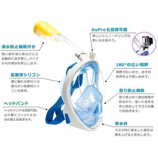 シュノーケルマスク フルフェイス 新感覚シュノーケルマスク スノーケル 子供用 大人用 シリコン メンズ レディース 水中メガネ 海水浴