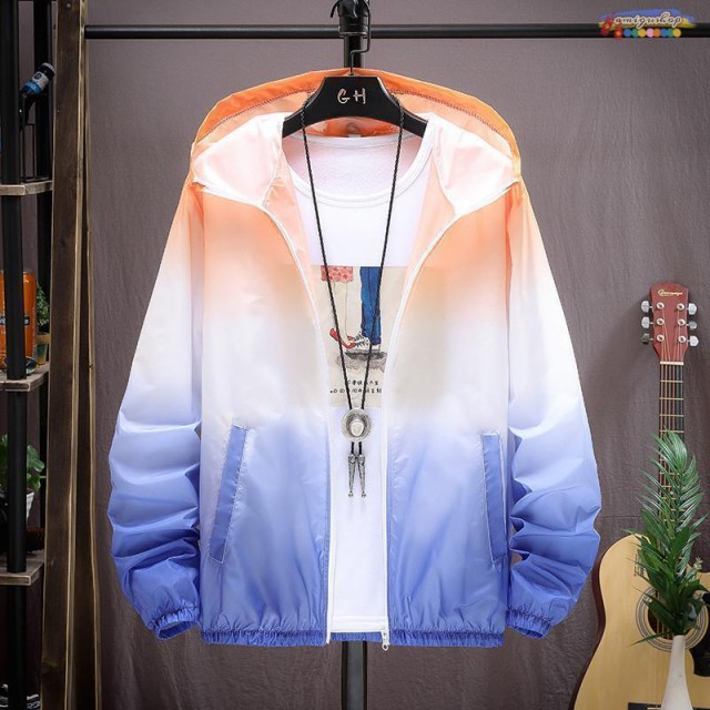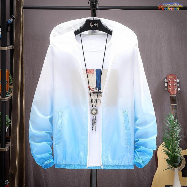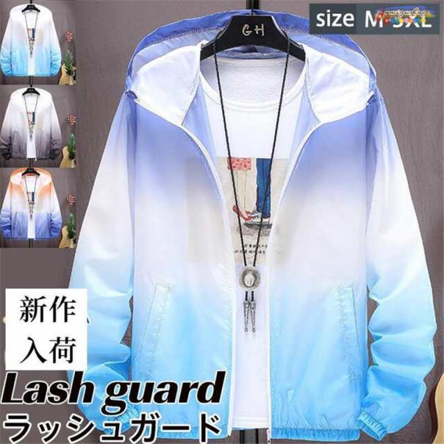 ラッシュガード メンズ UVカット パーカー 日焼け防止 冷感 グラデーション フード付き ジップアップ 薄手 軽量 速乾 ゆったり おしゃれ 山 夏