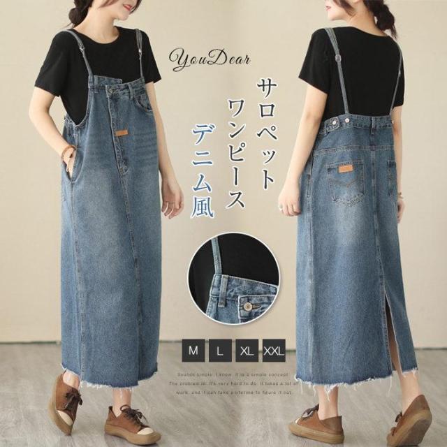 サロペット レディース ジャンパースカート 40代 オーバーオール オールインワン スカート ゆったり ロング丈 カジュアル ゆるカジ オールシーズン 春夏秋冬