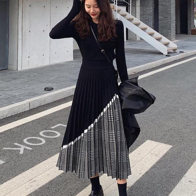 スカート ロング レディース 秋 冬 プリーツスカート 切り替え スカート ボトムス aライン 体型カバー お洒落 通勤 OL 上品 秋コーデ 20代 30代 40代