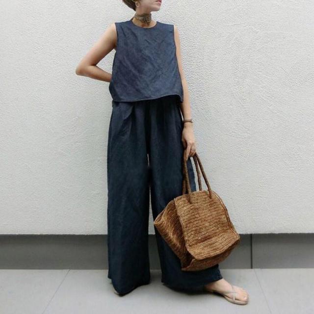 セットアップ レディース 夏ノースリーブブラウス シャツ デニムガウチョパンツ タンクトップ 40代 50代 トップス+パンツ カジュアル ゆったり 旅行 通勤 着痩せ