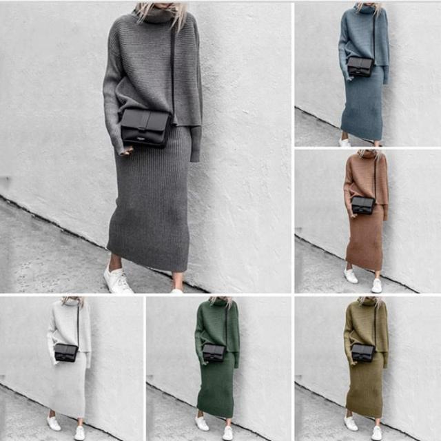 ニットセットアップ セットアップ レディース 40代 秋冬 長袖 上下セット セーター ハイネック スカート ミモレ丈 オシャレ 大人 着痩せ 通勤 入学式 卒業式