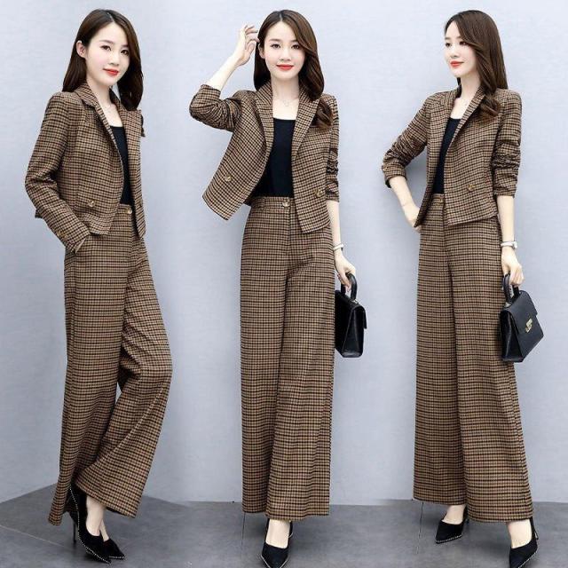 セットアップ レディース 40代 春 秋 長袖 スーツジャケット チェック柄 ワイドパンツ 2点セット 通勤 フォーマル カジュアル オシャレ 上品 大きいサイズ