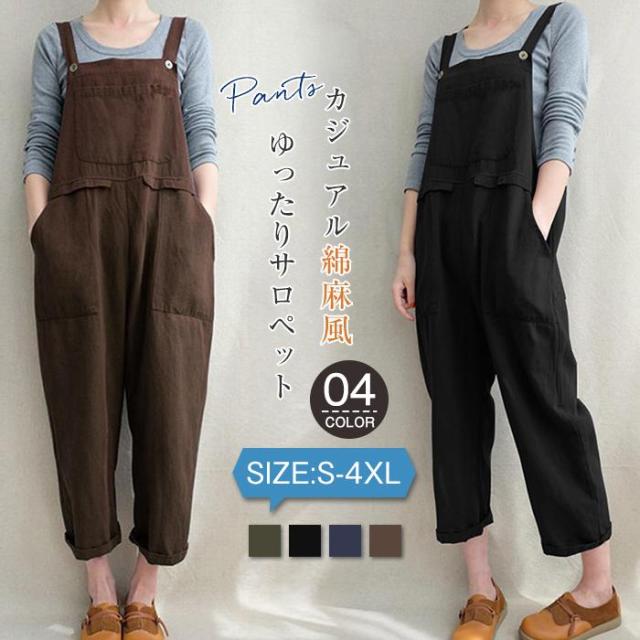 オールインワン サロベット レディース 綿麻混 オーバーオール ハロンパンツ ガウチョパンツ ゆったり 大きいサイズ 可愛い 大人