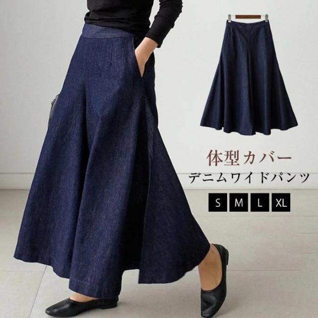ワイドパンツ レディース 春 夏 ガウチョパンツ ワイドデニム デニムパンツ 体型カバー 春夏 ジーンズ ハイウェストデニム ロングパンツ 大きいサイズ