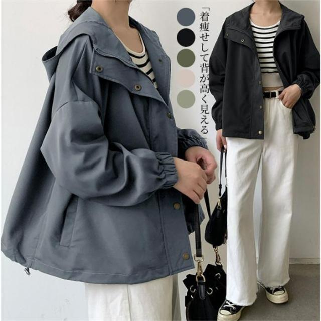 トレンチコート コート レディース 春 40代 ショート丈 スプリングコート 春コート フード付き ライトコート ジャケット 大きいサイズ 黒 通勤 カジュアル