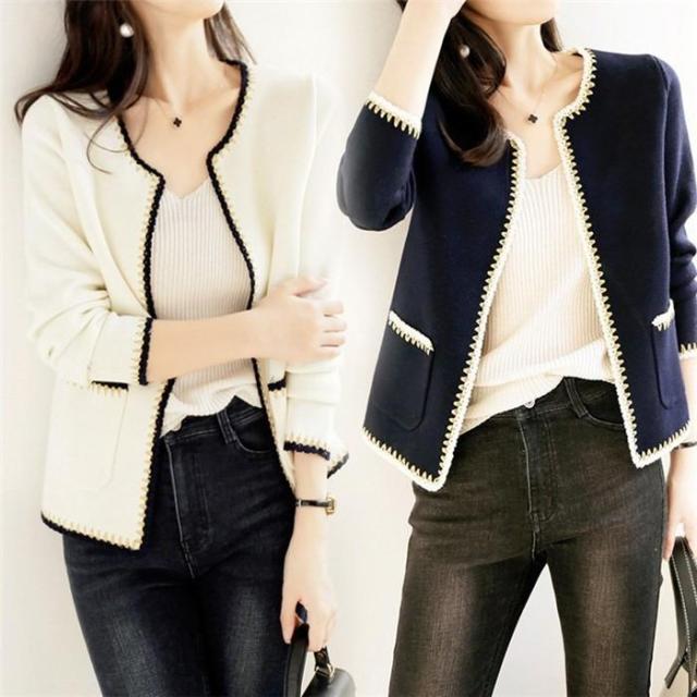 ノーカラージャケット レディース 秋新作 ジャケットショート丈 ニットカーディガン ブレザー 40代 アウター 韓国風 オシャレ 入学式 大人 通勤 30代