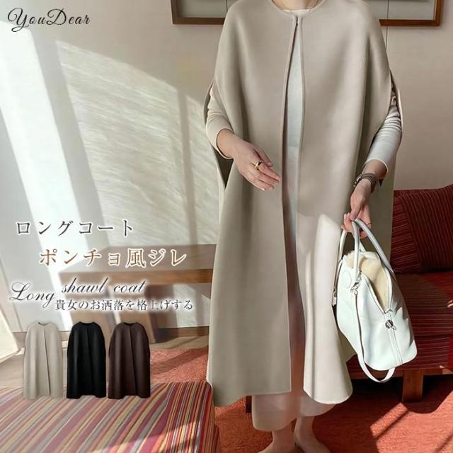 コート ロング ベスト ポンチョ ジレ レディース アウター メルトンノースリープ きれいめ プルオーバー 上品 暖かい 防寒 黒 着痩せ 秋冬 体型カバー