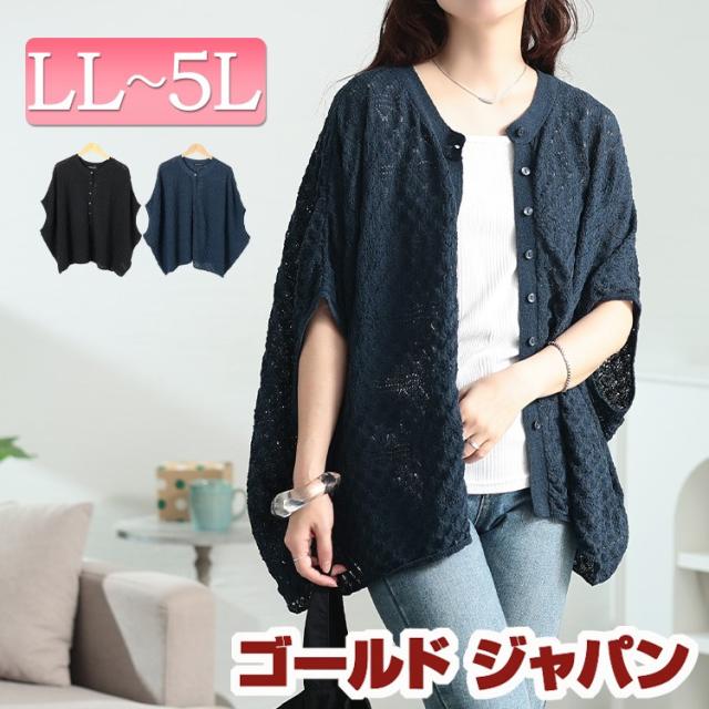 春新作 大きいサイズ レディース トップス カーディガン 透かし編みドルマンニットカーディガン カーデ ドルマンカーディガン 透かし編み ドルマン サマーニット ニット ストレッチ 5分袖 ゆったり 夏服 秋服 春服 LL 2L 3L 4L 5L ブラック 黒 ネイビー ゴールドジャパン