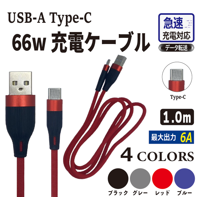 【 3本購入で+1本プレゼント! 】 期間限定特価! 66w Type-C 急速 充電 ケーブル 1m 6A USB-A android スマホ 【 商品レビュー記入で ポイント 10% 還元 】