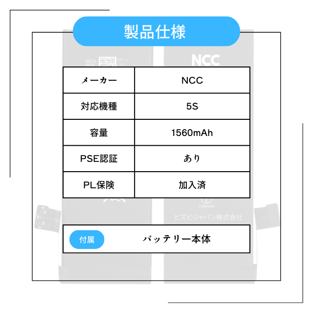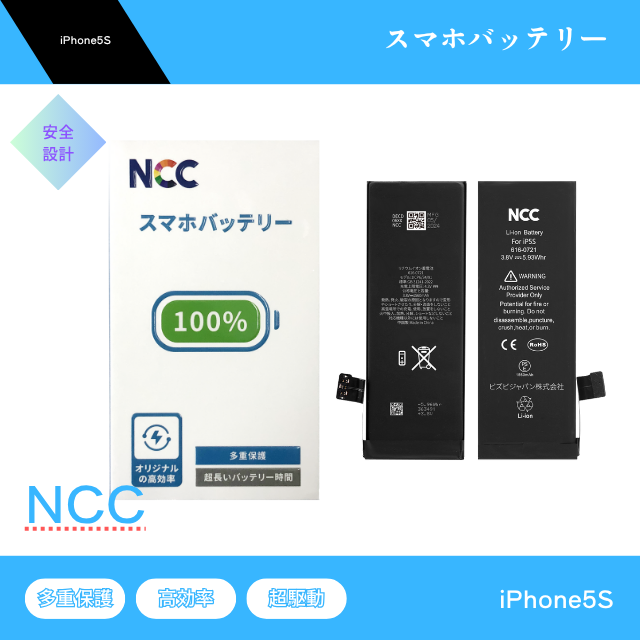 iPhone5S バッテリー NCC Prime 交換 純正同等 バッテリー バッテリーステッカー PSE取得