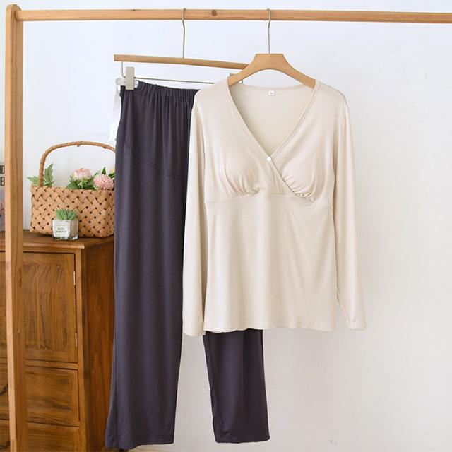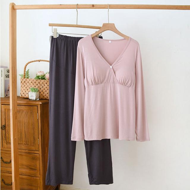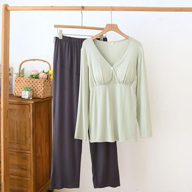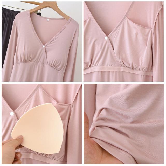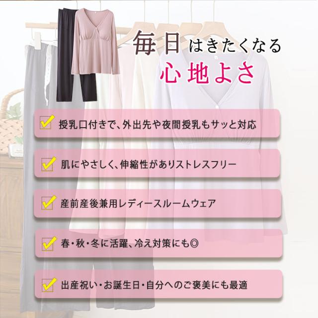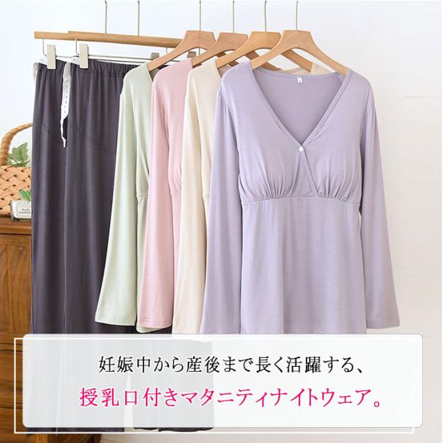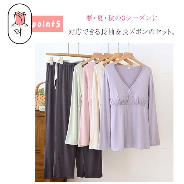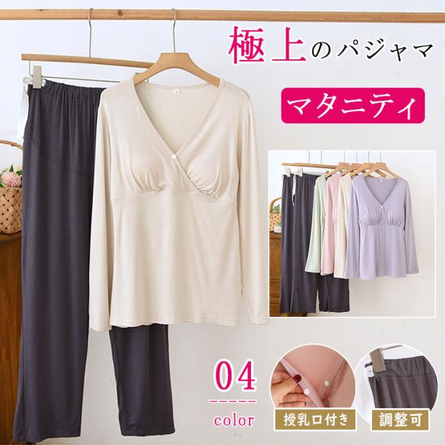 マタニティ パジャマ ナイトウェア 授乳パジャマ カットソーパジャマ 授乳口付き ルームウエア 長袖 上下セット モダール素材 吸汗速乾 柔らか 前開き 産前産後対応 春 夏 秋 ゆったり ギフト 出産準備