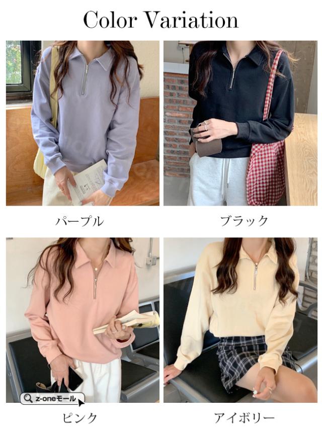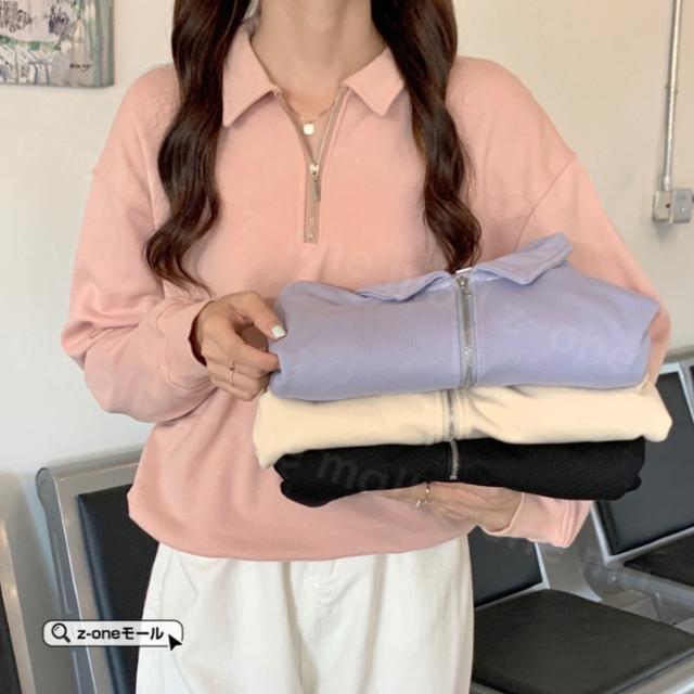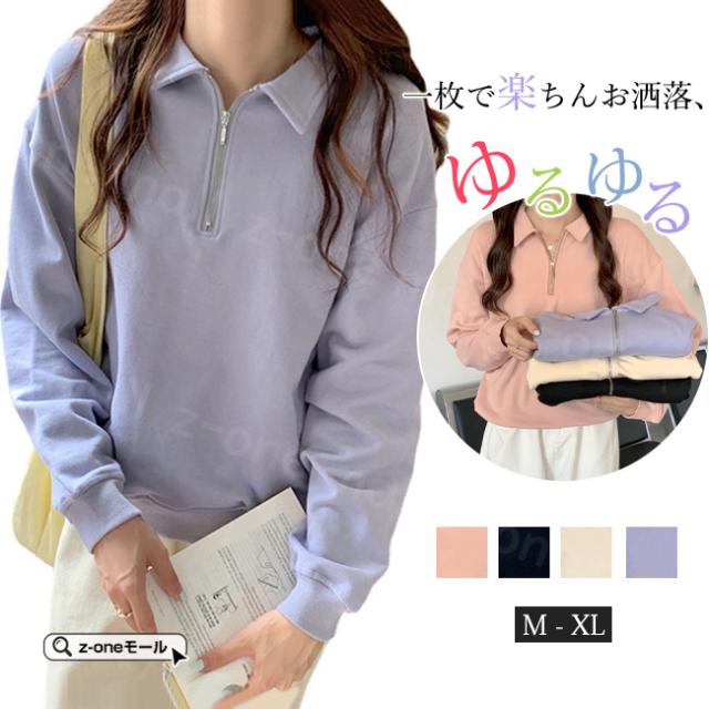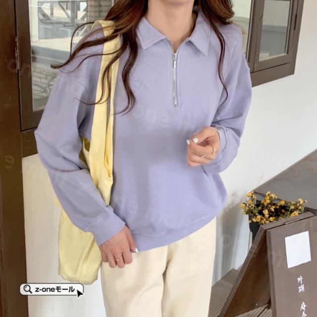 トレーナー スウェット プルオーバー 長袖 可愛い 夏新作 送料無料 ファスナー付き レディース カジュアル トップス 長袖Tシャツ tシャツ 春秋冬 通勤 通学 女性 ゆったり 七夕プレゼント