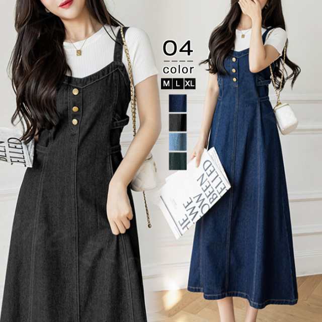 サロペット ワンピース レディース オーバーオール 大きいサイズ デニムマキシワンピース 夏 体型カバー オールインワン ファッション デニムワンピース レイヤード 重ね着 ミディアム ジャンパースカート デニム