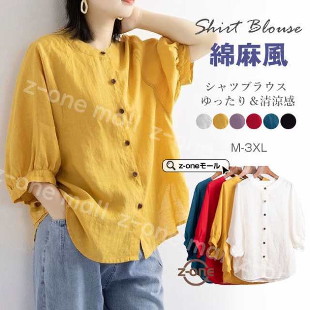 リネン混 シャツブラウス シフォンブラウス 夏新作 送料無料 レディース 綿麻風 半袖 シャツ ブラウス レディース 体型カバー 前開き 丸襟 カジュアル ゆったり 薄手 涼しい 七夕プレゼント