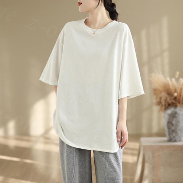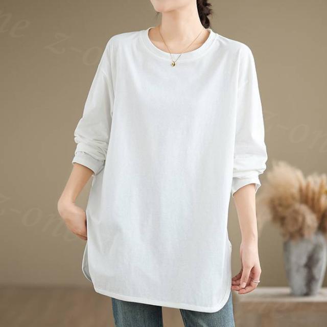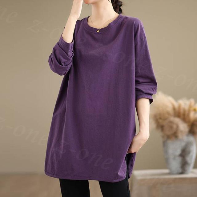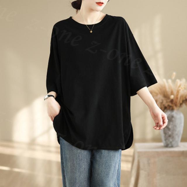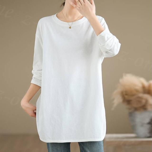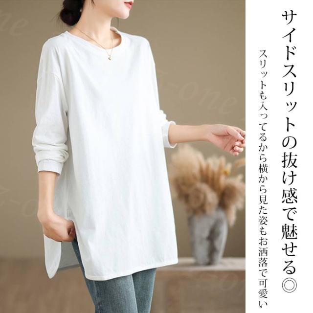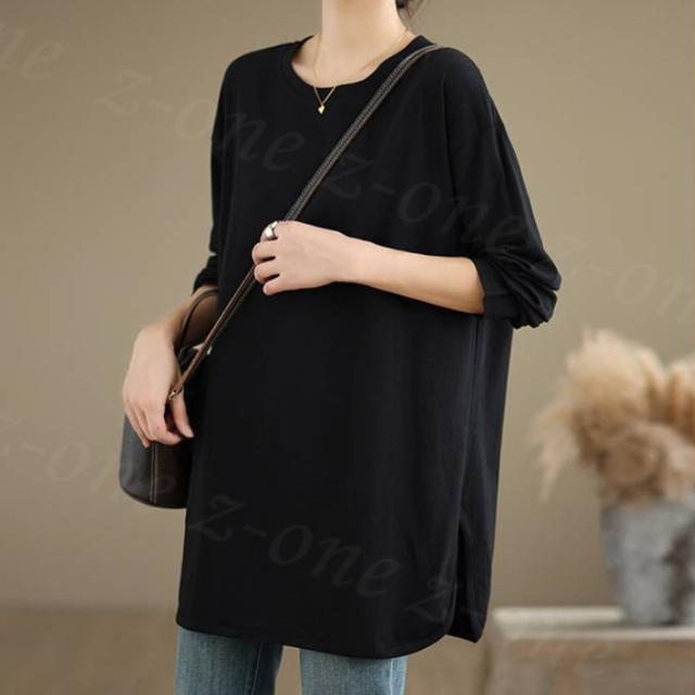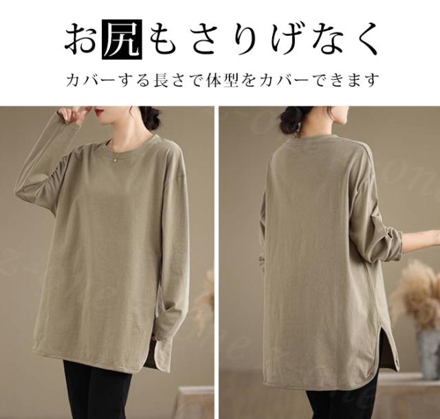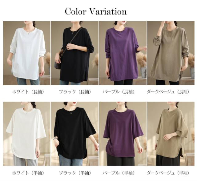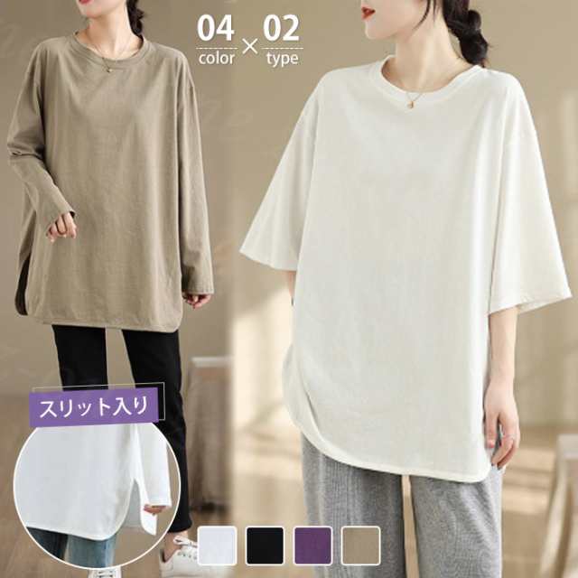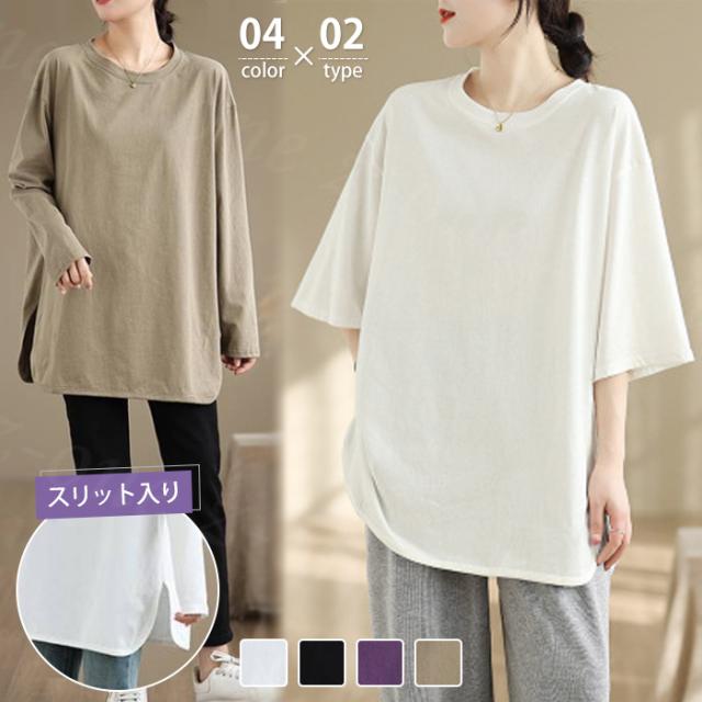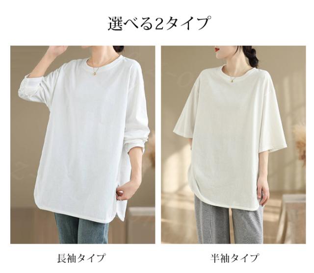 ロングtシャツ 半袖&長袖2タイプ レディース トップス ゆったり 無地 新作 送料無料 カジュアル 大きいサイズ カットソー 半袖Tシャツ ロングT 吸汗 体型カバー 可愛い 韓国風 肌触りいい