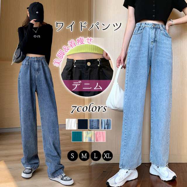 ワイドパンツ 夏新作 デニムパンツ レディース ハイウエスト デニムガウチョパンツ ジーンズ ロング丈 脚長効果 美尻 ガウチョパンツ ゆったり 七夕プレゼント