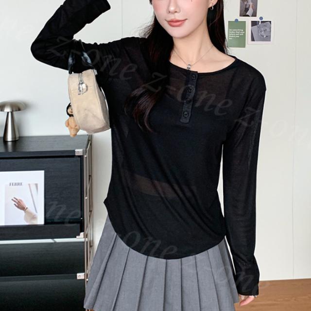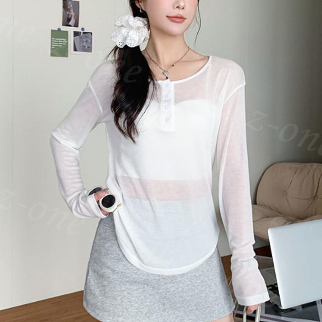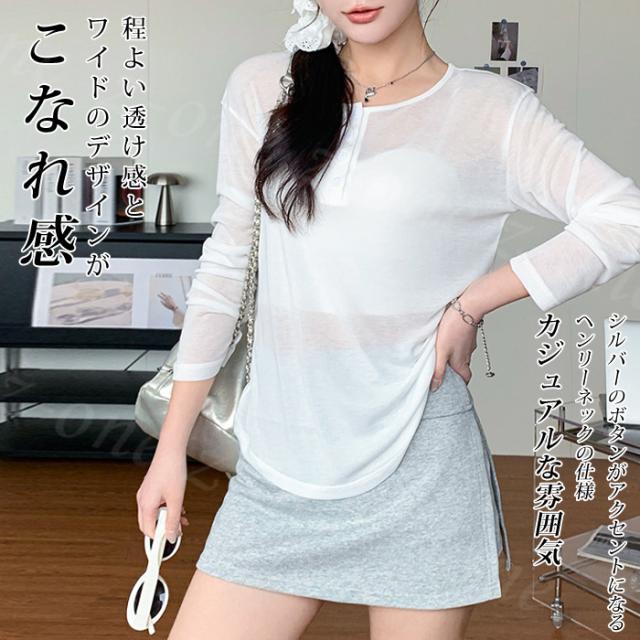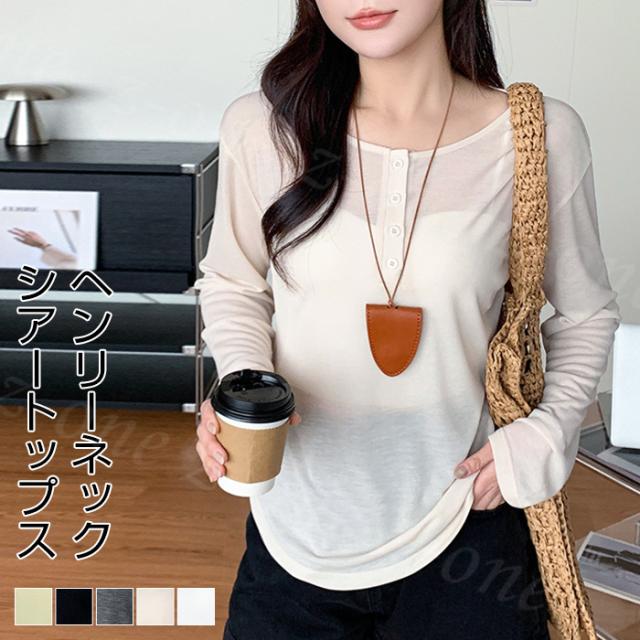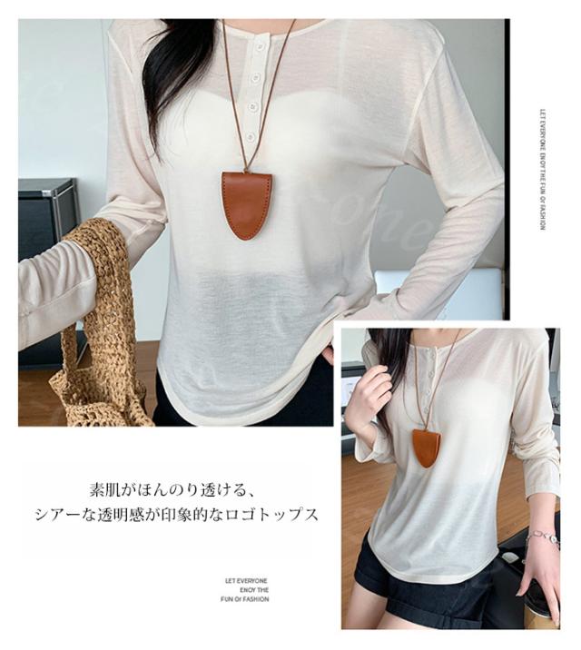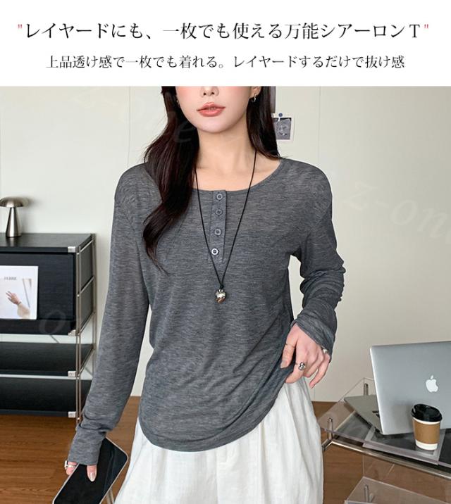 シアートップス シアーロングtシャツ ラウンドネック ロンT 透け感 レイヤード シアー 新作 tシャツ 長袖 インナー カットソー レディース 肌着 トップス 楽ちん シンプル カジュアル