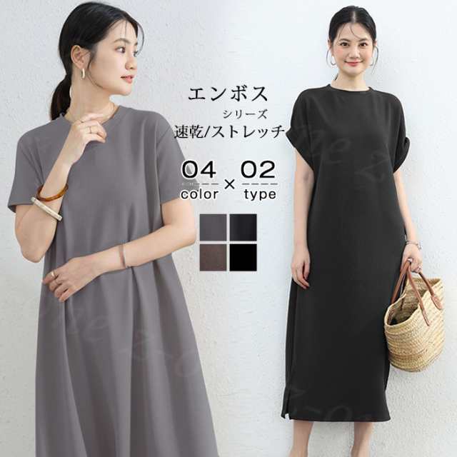 ワンピース ロングワンピース マキシ丈 夏新作夏新作 Aライン プルオーバー 無地 マキシワンピース 体型カバー シンプル 丸首 ラウンドネック 半袖 ゆったり 無地 薄手 レディース イージーケア 速乾 クルーネック ストレッチ 春 夏