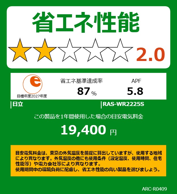 | RAS-WR2225S(W)ルームエアコン 白くまくん 2025年モデル Wシリーズ スペック情報 | |