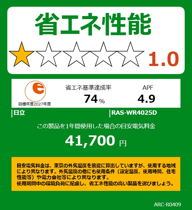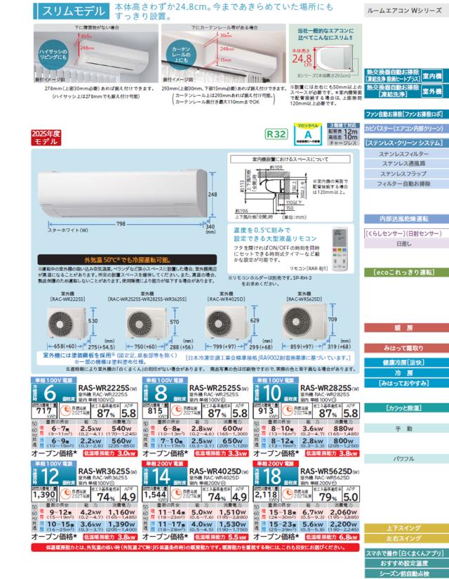 | エアコン 14畳 4.0kW 200V 白くまくん 2025年モデル Wシリーズ RAS-WR4025D-W スペック情報 | |