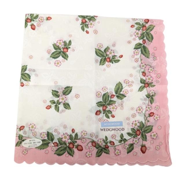 未使用 ウェッジウッド ウエッジウッド ハンカチ 綿 100% コットン ピンク ワイルドストロベリー 花柄 レディース WEDGWOOD 【中古
