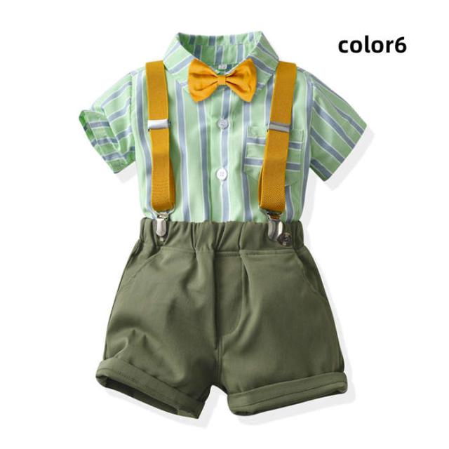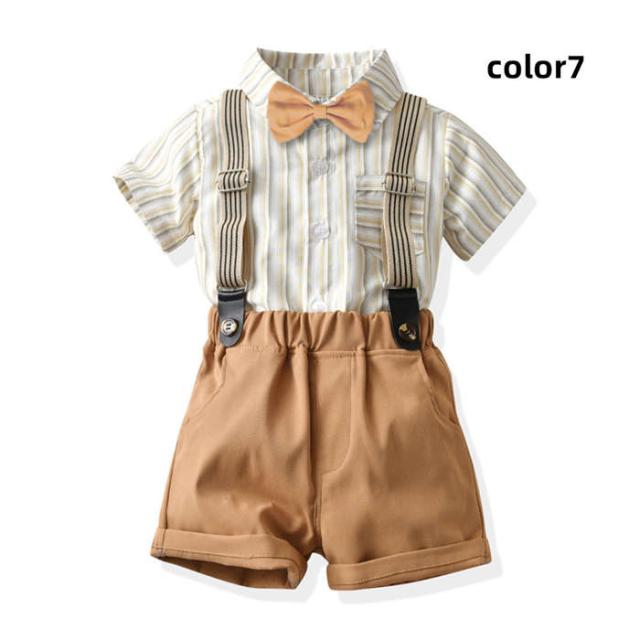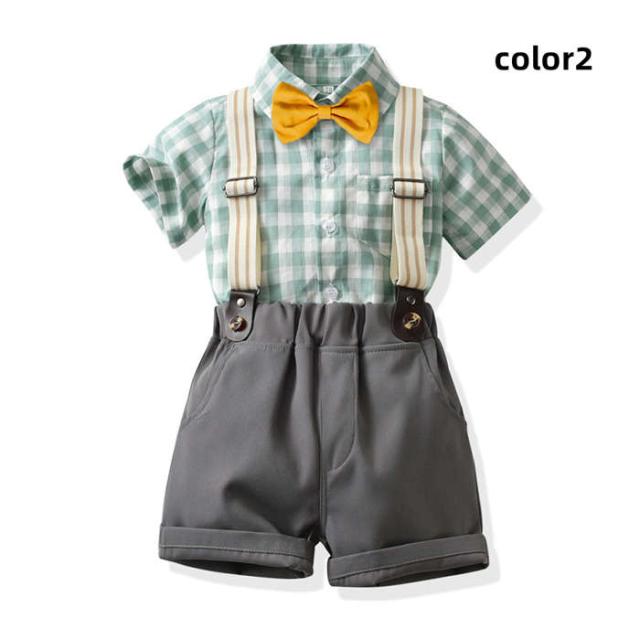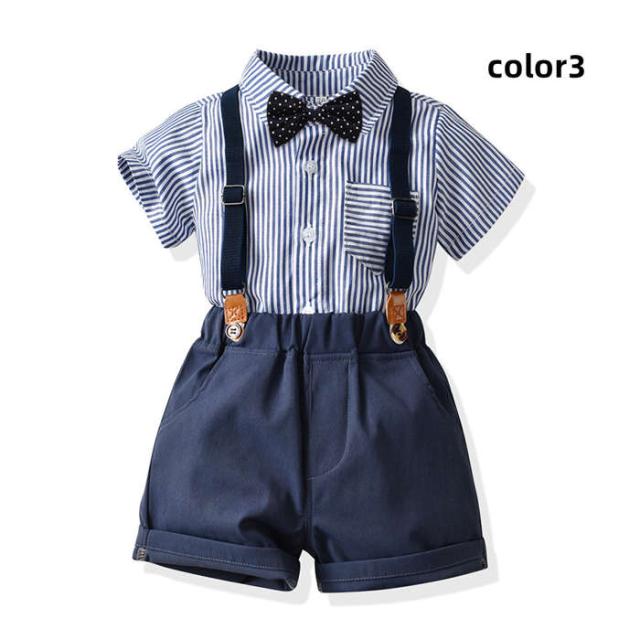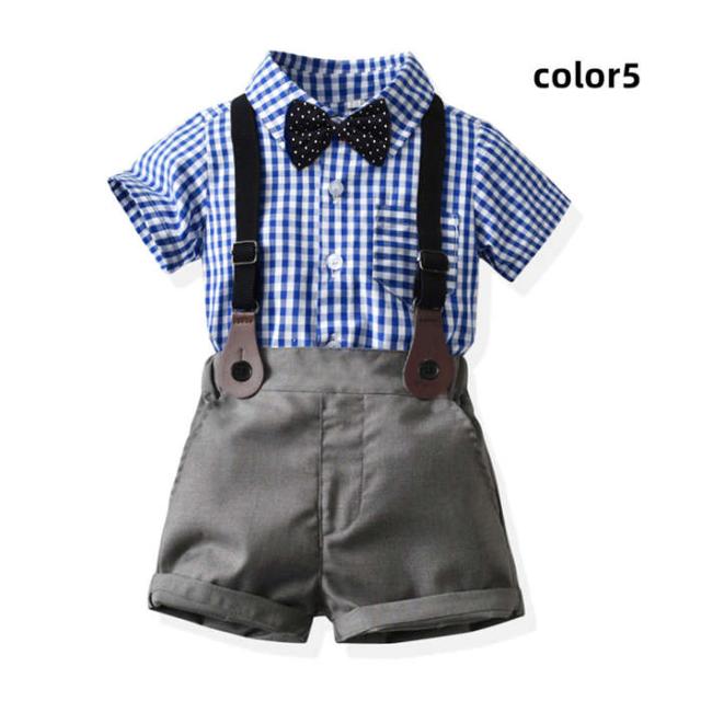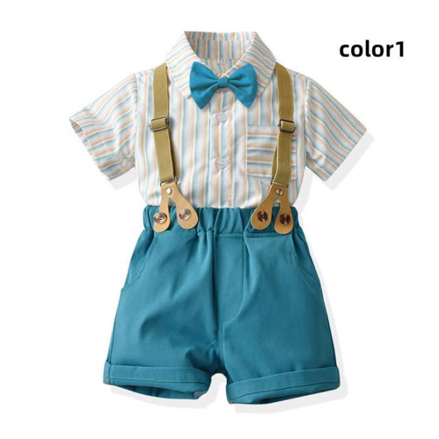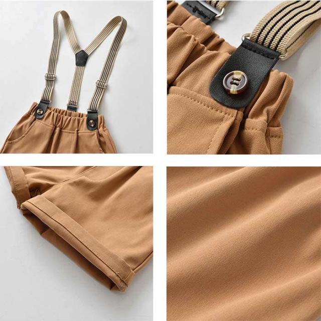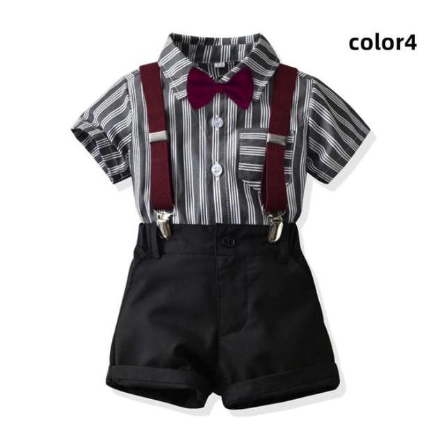 キッズスーツ 入学式スーツ 男の子 ベビースーツ サロペット リボン シャツ パンツ 子供スーツ 4点セットフォーマルスーツ