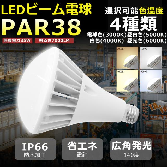 LED電球 ビーム球 防水タイプ E26 7000LM PAR38 スポットライト 口金E26 消費電力35W ビームランプ形 ビーム電球 屋外 ライトアップ 高輝度 電球色 白色 昼白色 昼光色 長寿命 省エネ エコ 駐車場 看板用照明 工場照明 舞台照明 スタジオ オフィス グラウンド ledライト