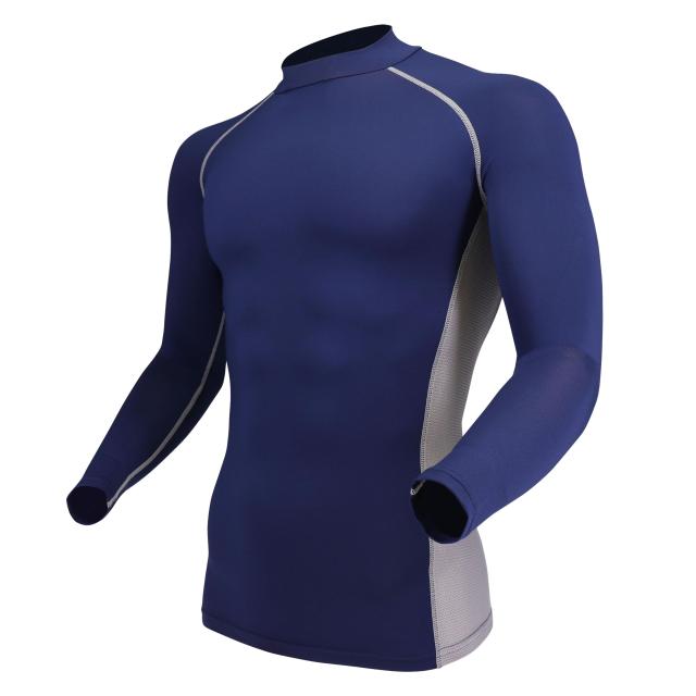 おたふく手袋(Otafuku Glove) 夏用インナー 長袖ハイネック 吸汗速乾 消臭 接触冷感 コンプレッション メンズ JW-625 ネイビー M 【3枚