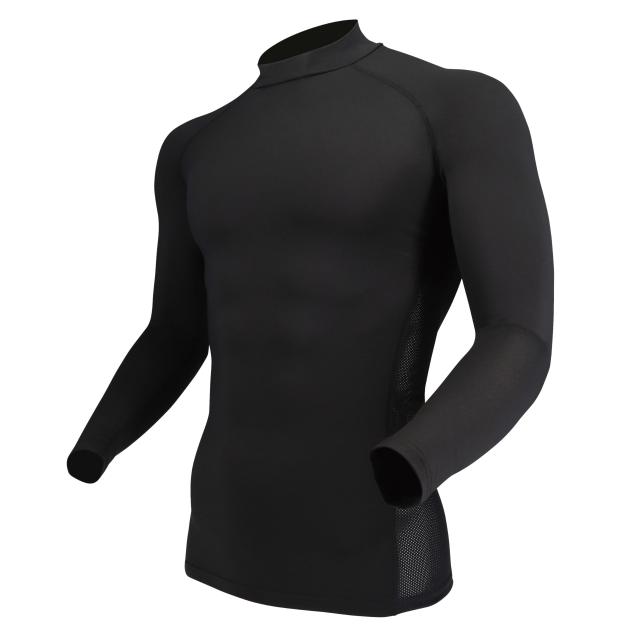 おたふく手袋 夏用インナー 長袖 ハイネック 接触冷感 吸汗速乾 消臭 コンプレッション UVカット メンズ JW-625 ブラック LL 【3枚セッ