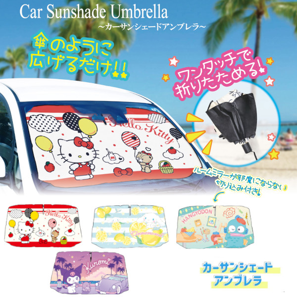 フロントガラス用のサンリオデザインがかわいい傘タイプのサンシェードに新柄登場です。