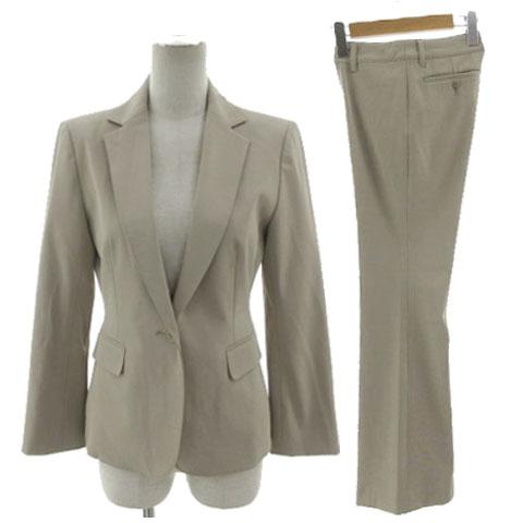 【中古】エムプルミエ M-Premier スーツ ジャケット テーラードカラー パンツ 裾フレア ストレッチ グレージュ 38 36