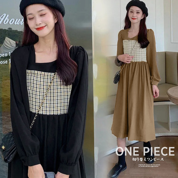 チェック柄切り替えデザインがお洒落な長袖ワンピース