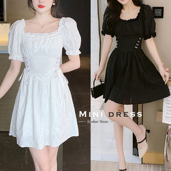 ワンピース スクエアネック ミニワンピース無地パフ袖 送料無料 即日発送