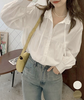 フリル衿ブラウス 長袖タックシャツ