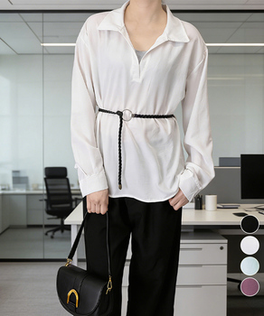 レイヤード風シャツブラウスベルト付き春服