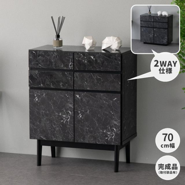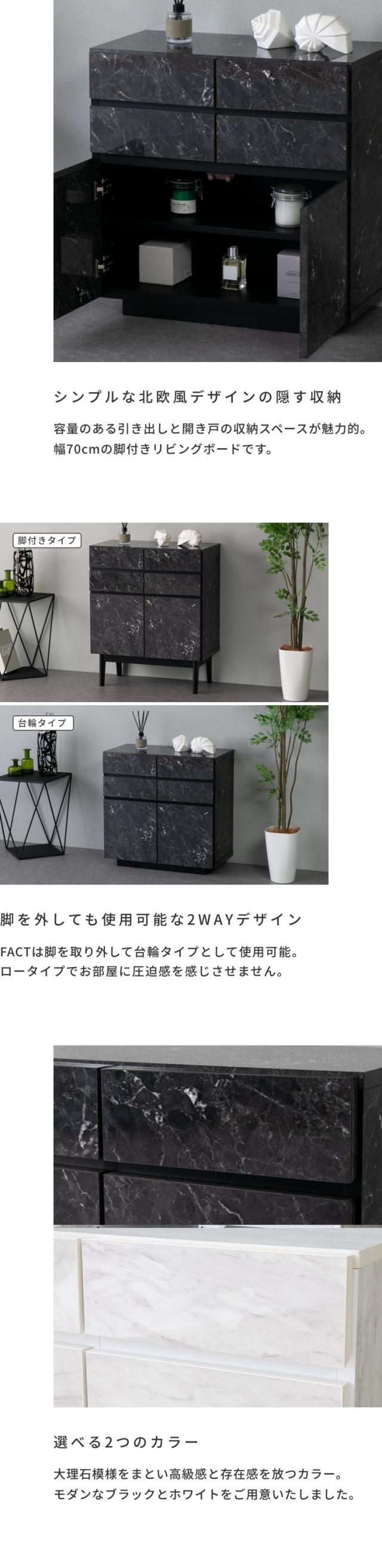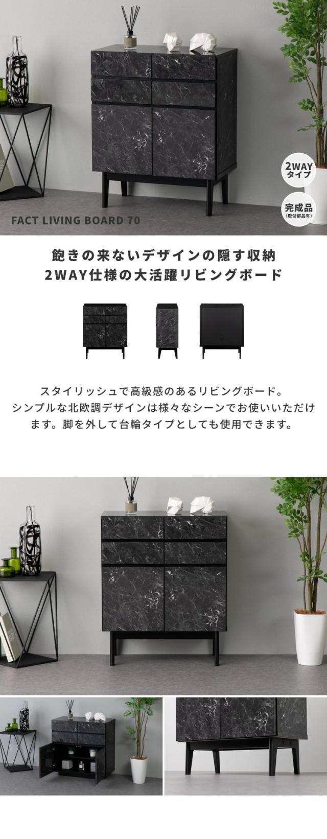 リビングボード チェスト 大理石 石目柄 収納 デコラティブ メラミン 脚 お洒落 シック スタイリッシュ 一人暮らし おしゃれ ブラック 脚 長方形 シャープ スリム 品質保証 ISSEIKI FACT-3 LIVING BOARD 70 (LM-BK)