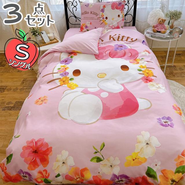 サンリオ ハローキティ シングル3点セット掛け布団カバー ボックスシーツ 枕カバー しわになりにくく乾きが早い ピーチスキン加工 キティ マイメロディ クロミ シナモロール サラサラ(代引不可)【送料無料】