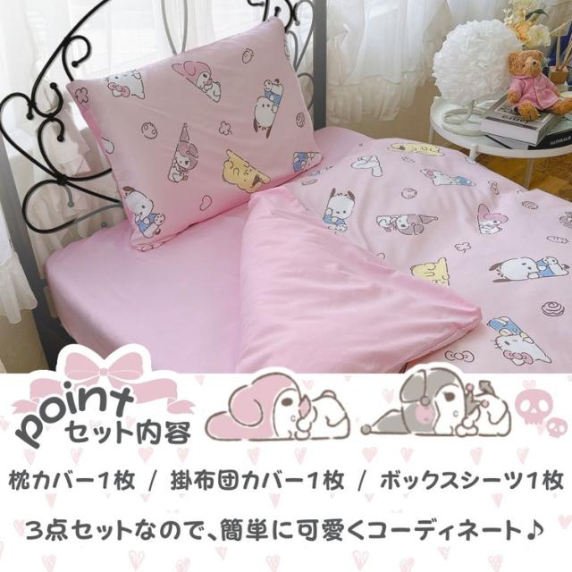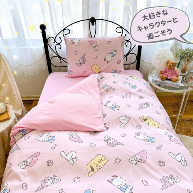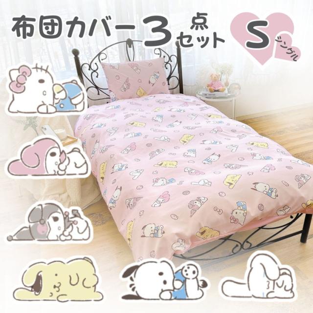 サンリオ シングル 3点セット 掛け布団カバー ボックスシーツ 枕カバー しわになりにくく乾きが早い ピーチスキン加工 キティ マイメロディ ポチャッコ サラサラ かわいい 子供用 子供部屋(代引不可)【送料無料】