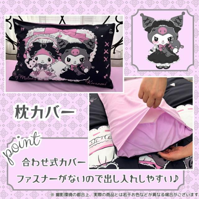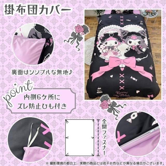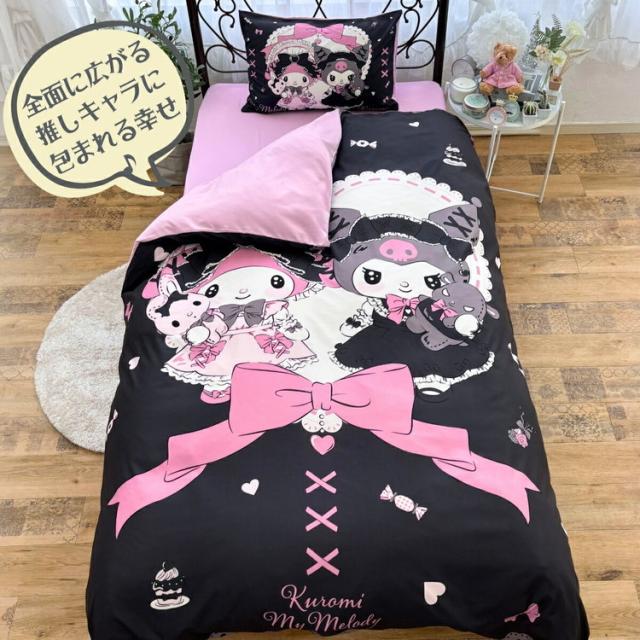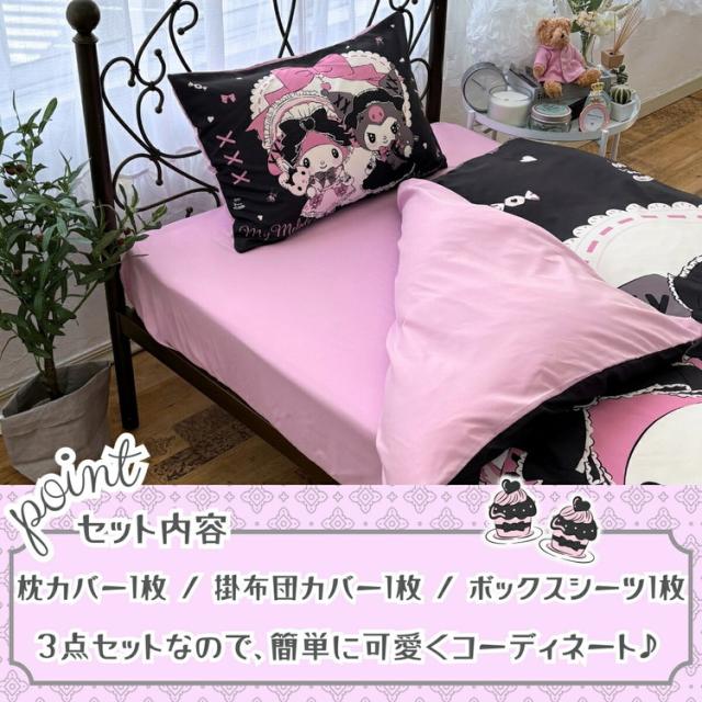 真夜中のメロクロ クロミ マイメロディ シングル3点セット掛け布団カバー ボックスシーツ 枕カバー しわになりにくく乾きが早い ピーチスキン加工 キテサラサラ かわいい 子供用 子供部屋(代引不可)【送料無料】