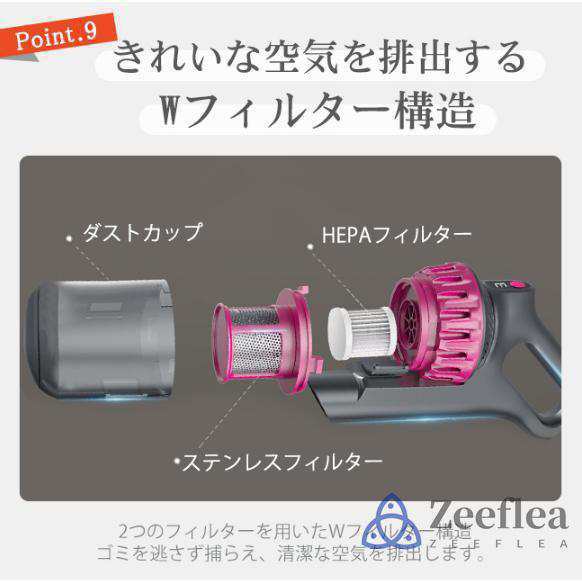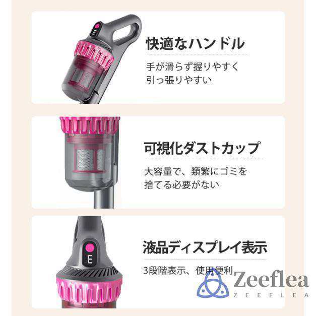 【驚きの軽量設計で快適に使える】 このスティッククリーナーは、わずか0.6kgの軽量設計で、片手でも楽に操作できます。その軽さは長時間の使用でも疲れを感じにくく、階段や高い場所の掃除も容易にこなせます。軽量かつコンパクトなので、持ち運びも簡単で、家の中だけでなく車内の清掃にもぴったりです。また、収納スペースを有効活用できるコンパクト設計により、場所を取らずに保管できます。家庭用だけでなく、オフィスでも便利に使えるデザインで、どんな場所でも快適に使えます。これ一台で、家全体を清潔に保ちましょう。 【大容量ダストカップで手間いらず】 この掃除機には、透明な200mlの大容量ダストカップが搭載されており、ゴミの量を一目で確認できます。ゴミがいっぱいになる頻度が少ないため、掃除中の手間が省け、効率的に掃除が進められます。ダストカップは取り外しが簡単で、水洗いも可能なので、いつでも清潔な状態を保てます。掃除後もダストカップの中のゴミをすぐに捨てることができるため、手間をかけずに清潔を維持できます。視認性の高いデザインは、ゴミの溜まり具合をリアルタイムで確認でき、掃除の効率をさらに高めます。 【長時間使用可能なバッテリーと静音設計】 この掃除機は、2000mAh*3の大容量バッテリーを搭載しており、最大で30分の連続使用が可能です。一度の充電で家全体の掃除が完了するため、充電時間を気にせず使用できます。さらに、低騒音設計により、早朝や深夜でも周囲に迷惑をかけることなく、静かに掃除が行えます。パワフルながら静かな運転音は、日常の騒音ストレスを軽減し、家族や隣人を気にせず快適に使用できるのが魅力です。多重フィルターシステムが微細なホコリやアレルゲンを確実に捉え、清潔な空気を排出します。 最大約35分の長時間使用可能!