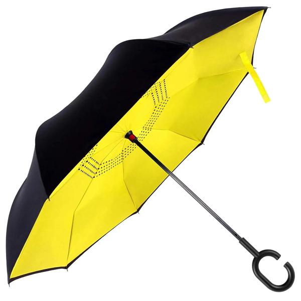 Cハンドル逆傘ダブルリブ耐久性のある防風大型傘逆折りたたみ二層傘頑丈な耐久性
