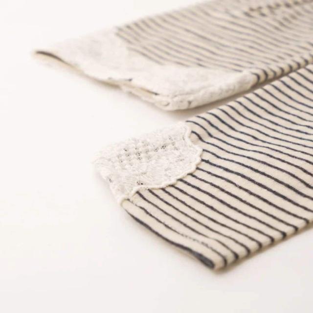 レースを斜めにカッティングし、裾部分にボタンでアクセントをつけてカジュアルな印象のUVアームカバー。