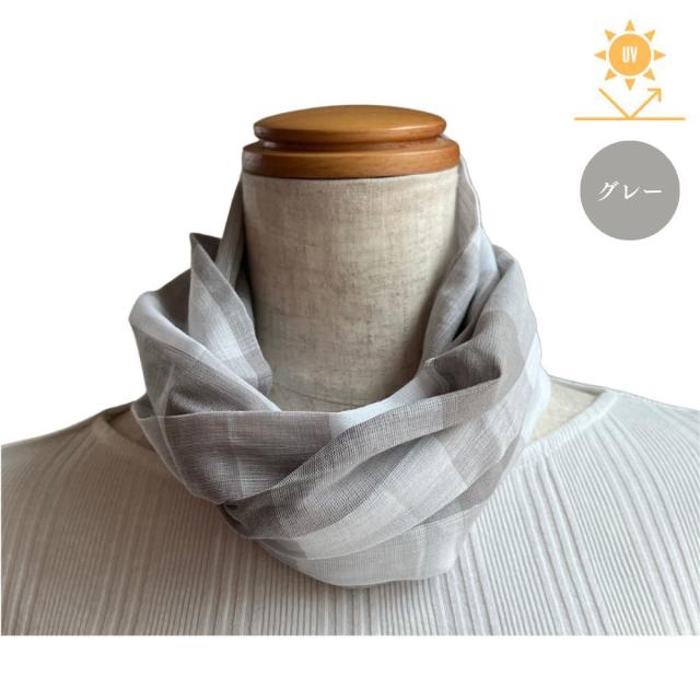 チェック柄が大人の色気と立体感をプラスします。首周りを紫外線から守るスカーフ。誰でも簡単に巻けるように、首の後ろにあるマジックテープを留めるだけでふんわりオシャレにまとまります。