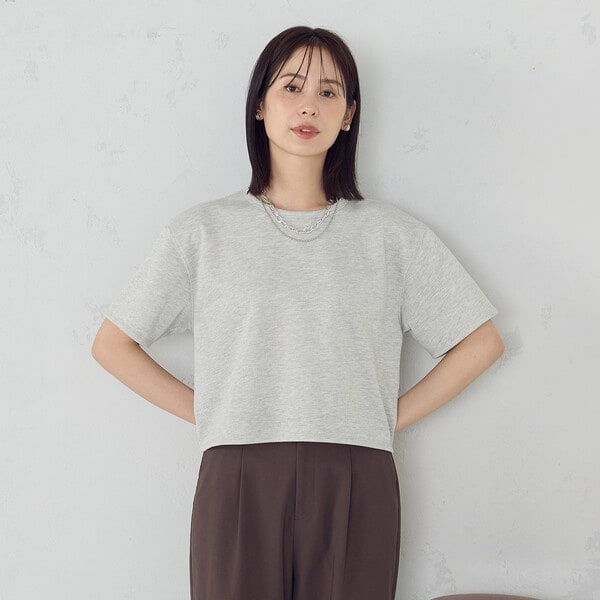クロップド丈Tシャツ。
