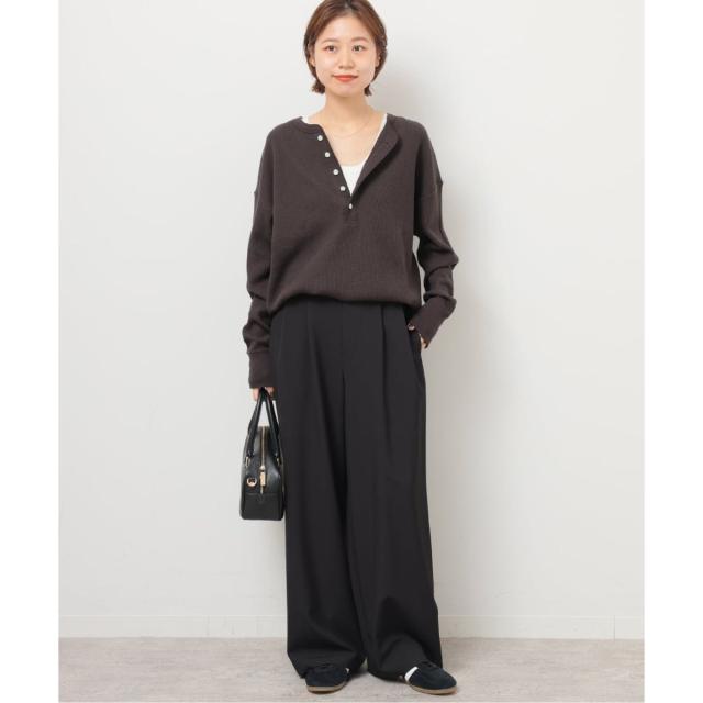 秋冬を代表する大定番=ワッフル(サーマル)編みで仕上げた別注ヘンリーネックカットソー。