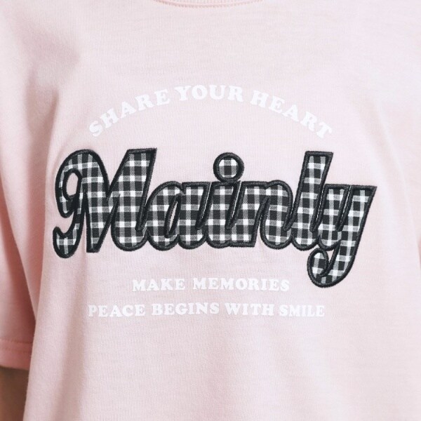ギンガムチェック生地のアップリケがポイントのガーリー系Tシャツです。