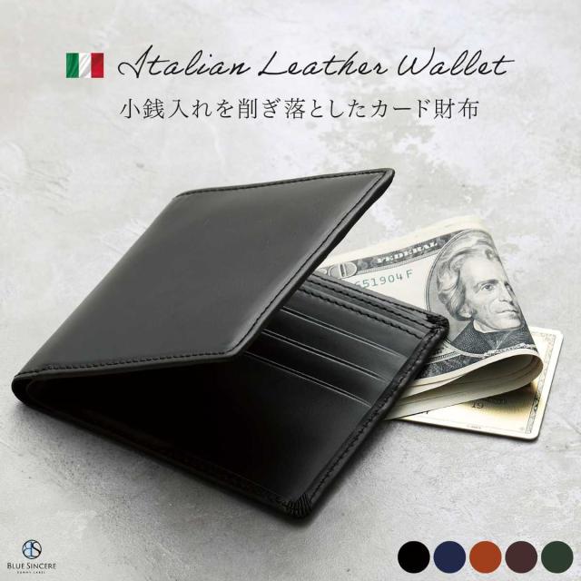 ブルーシンシア(BLUE SINCERE)/小銭入れなし 二つ折り財布 イタリアンレザー 札入れ 薄型 メンズ