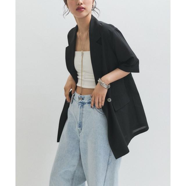ハーフスリーブのダブルのテーラードジャケット。