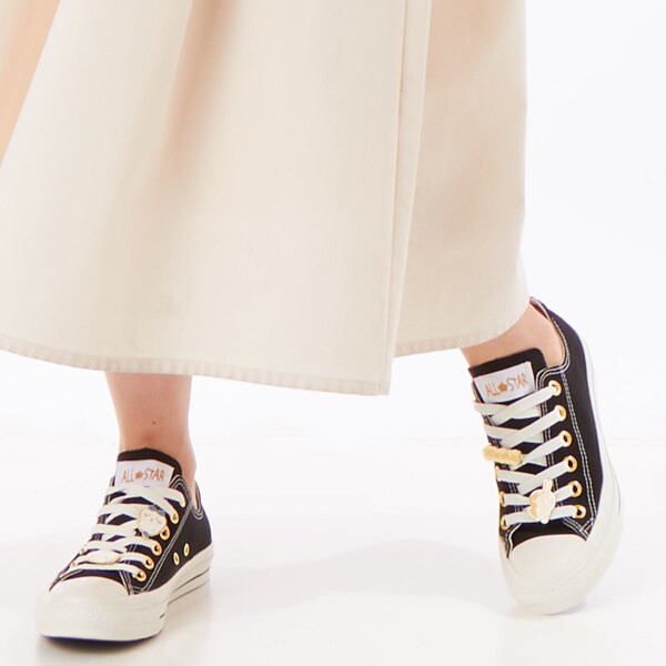 オールスターをベースに、ゴールドのメタルチャームを付属したキュートなデザイン。
